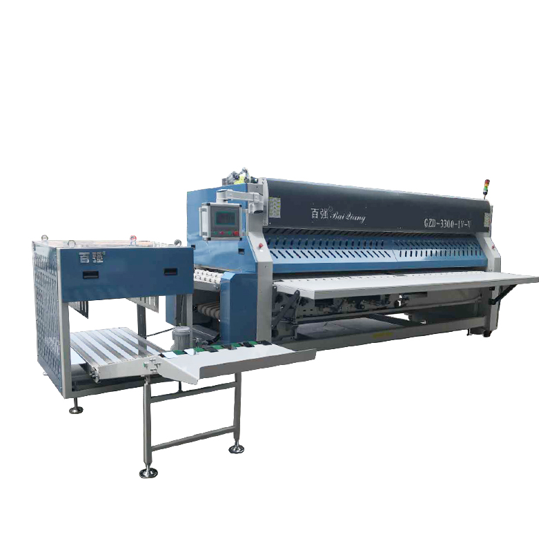 經過上面的工序后,后一步就是賓館洗滌物品的折疊,折疊可以是人工折疊也可以用賓館洗滌設備的后整理設備—折疊機設備進行折疊,這主要取決于賓館床單被套等紡織物的量,如果一個賓館其房間不超過100件,那么可以考慮以人工的方式進行折疊,