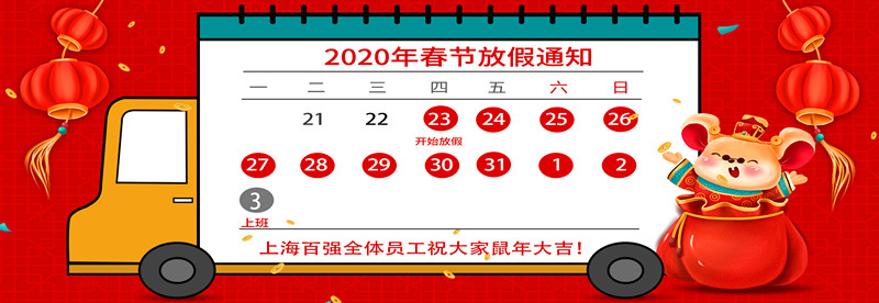 百強洗滌設備放假通知,現(xiàn)將2020年春節(jié)放假安排通知如下:1月23日至2月2日放假調休,共10天。2月3日(星期一)上班。節(jié)假日期間,公司除值班人員按照值班表做好值班工作之外,其他人員休息。